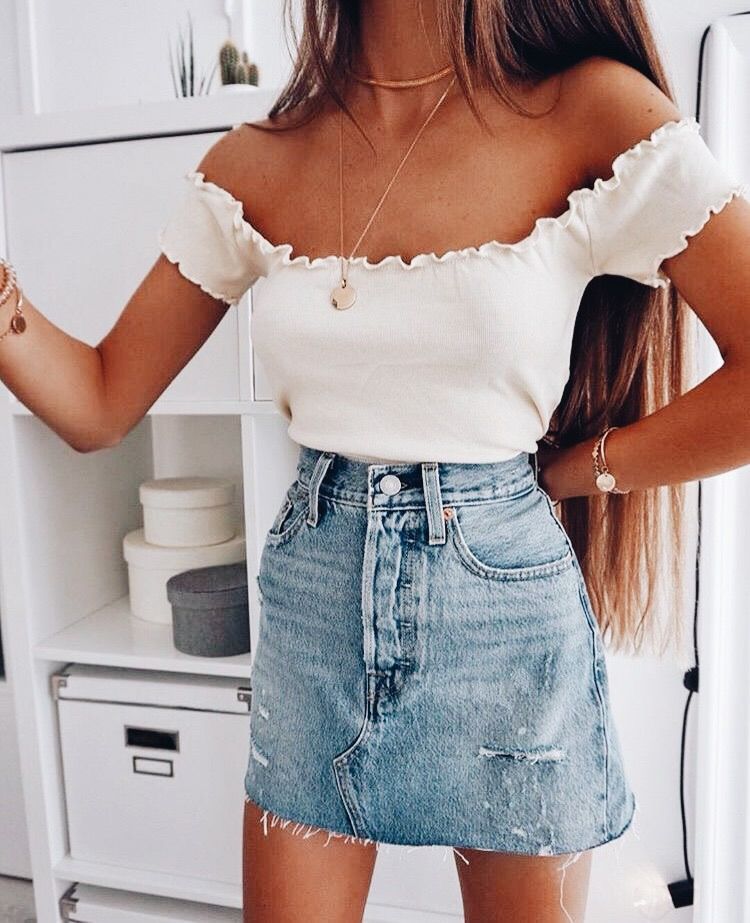 В тренді топи з відкритими плечима, вони теж добре гармонують з міні. Але важливо пам'ятати, що таке вбрання годиться тільки для неофіційних зустрічей і заходів.