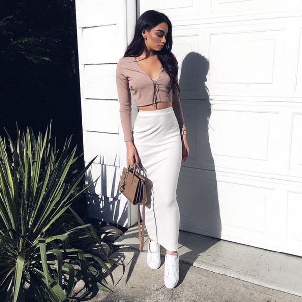 Також можна надіти довгу спідницю з каблуком. Це поєднання менш несподіване, але раніше деякі стилісти стверджували, що високий каблук не сумісний з довжиною нижче щиколотки. Зараз же вони змушені взяти свої слова назад, адже подібні комбінації стали трендовими.