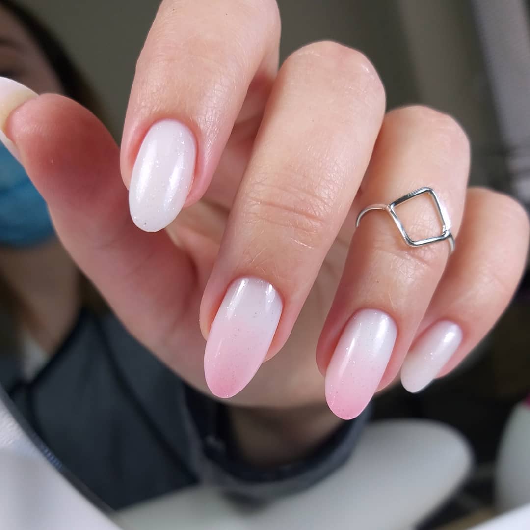 Також можна зробити молочний манікюр із ефектом омбре – тобто з переходом від одного відтінку до іншого.