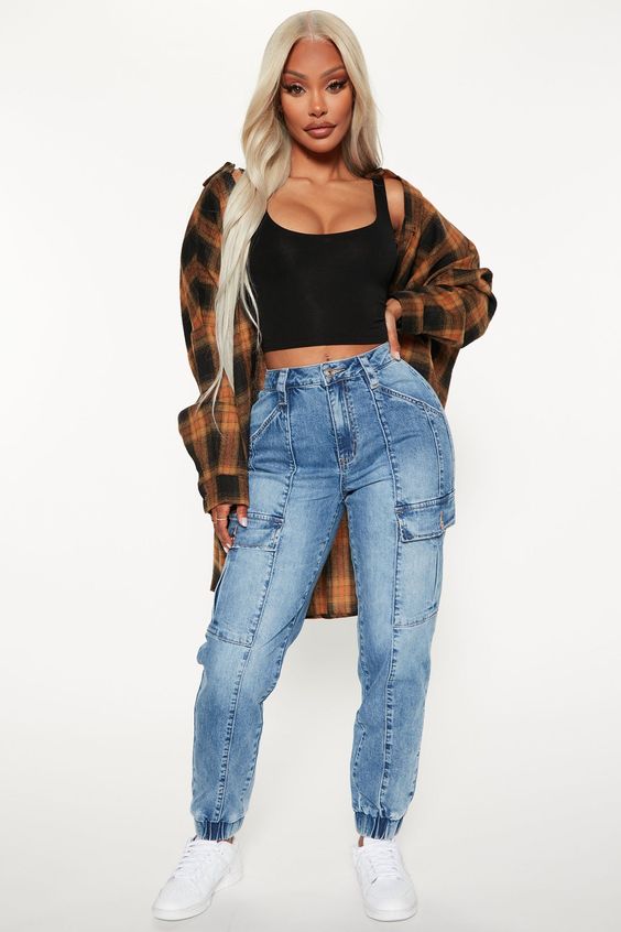Якщо у вашому гардеробі вже є одні джинси, зверніть увагу на чорні джогери. Їх можна поєднувати з блузами, водолазками та сорочками у клітинку.