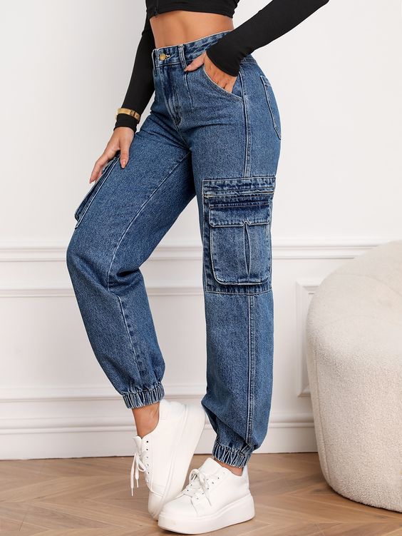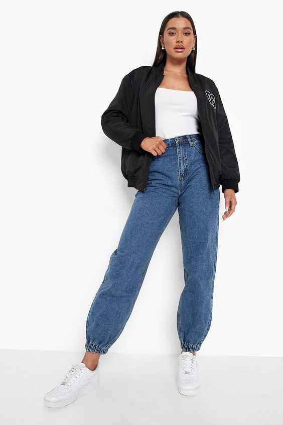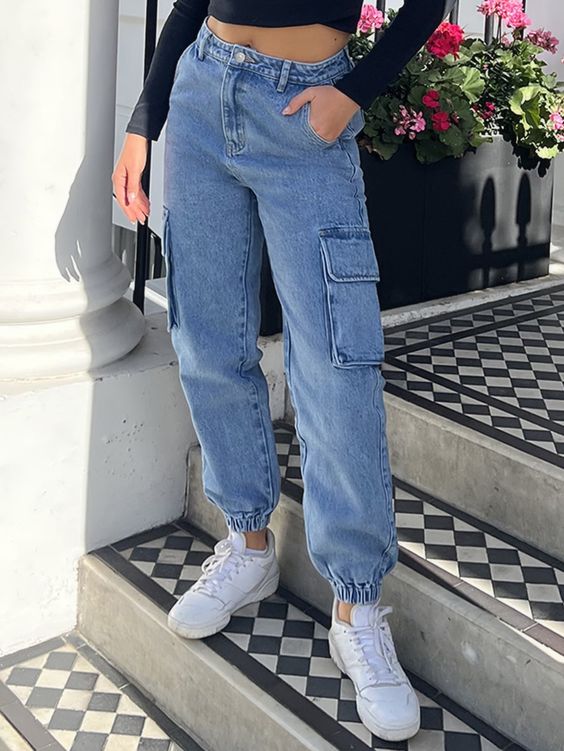 Джинси джогери добре поєднуються з різними топами, футболками, лонгслівами та спортивним взуттям – кедами та кросівками. Доповнити образ можна сумкою-бананкою або рюкзаком.