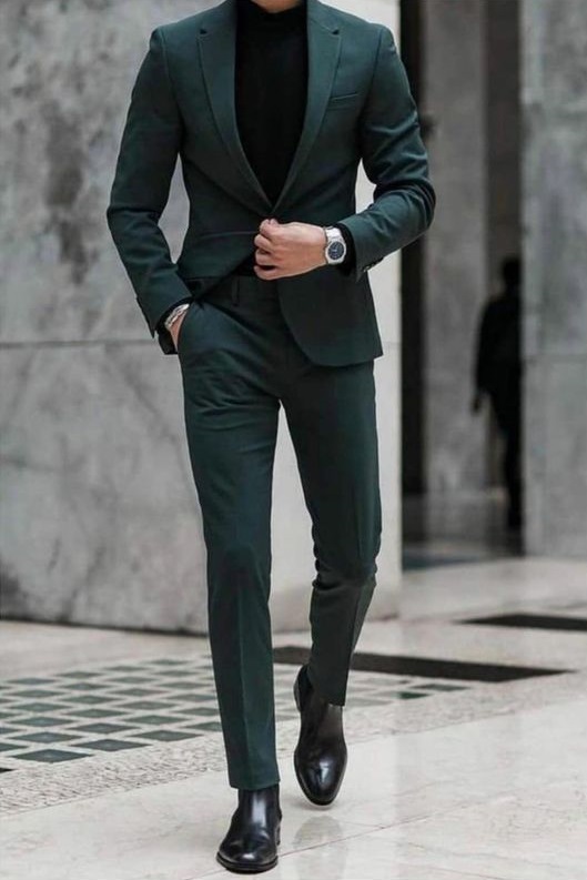 Якщо ви любите класику, пригляньте костюм з однобортним піджаком та штанами прямого крою зі стрілками. Вибирайте модель темно-зеленого або насиченого синього відтінку, щоб бути у тренді, та доповніть лук шкіряними туфлями.
