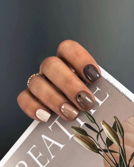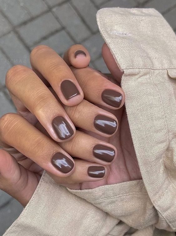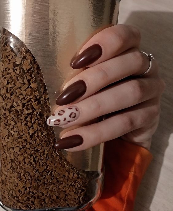 Коричневі відтінки залишаються актуальними як у осінніх, так і у зимових образах. Це універсальний колір, який підійде під будь-який стиль та форму нігтів. Поекспериментуйте з абстрактними чи мармуровими візерунками, матовим глянцевим покриттям. Це манікюр, який ідеально підходить для осені, але і взимку виглядатиме шикарно в будь-якій ситуації.