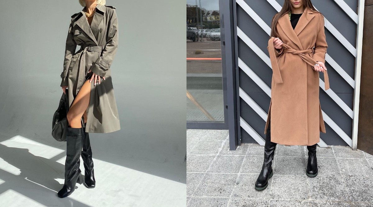 Постійний атрибут кожної дівчини восени – це високі демісезонні чоботи. Вони можуть бути як на підборах, так і на плоскій підошві. Таку модель найкраще поєднувати з короткими спідницями і блузками, сукнями з легких тканин, а зверху надягати довге пальто або тренч.