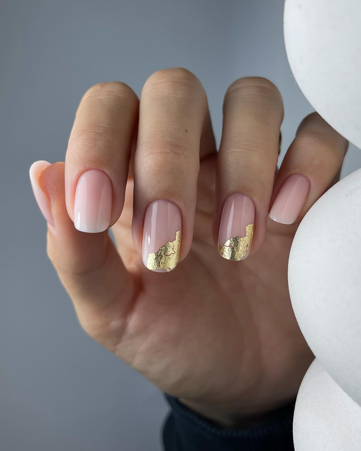 Нюд на нігтях завжди виглядає вишукано та дорого. Але якщо ви хочете урізноманітнити такий дизайн – використовуйте фольгу. З її допомогою на нігтях можна створити різні візерунки, які підкреслять вашу індивідуальність.