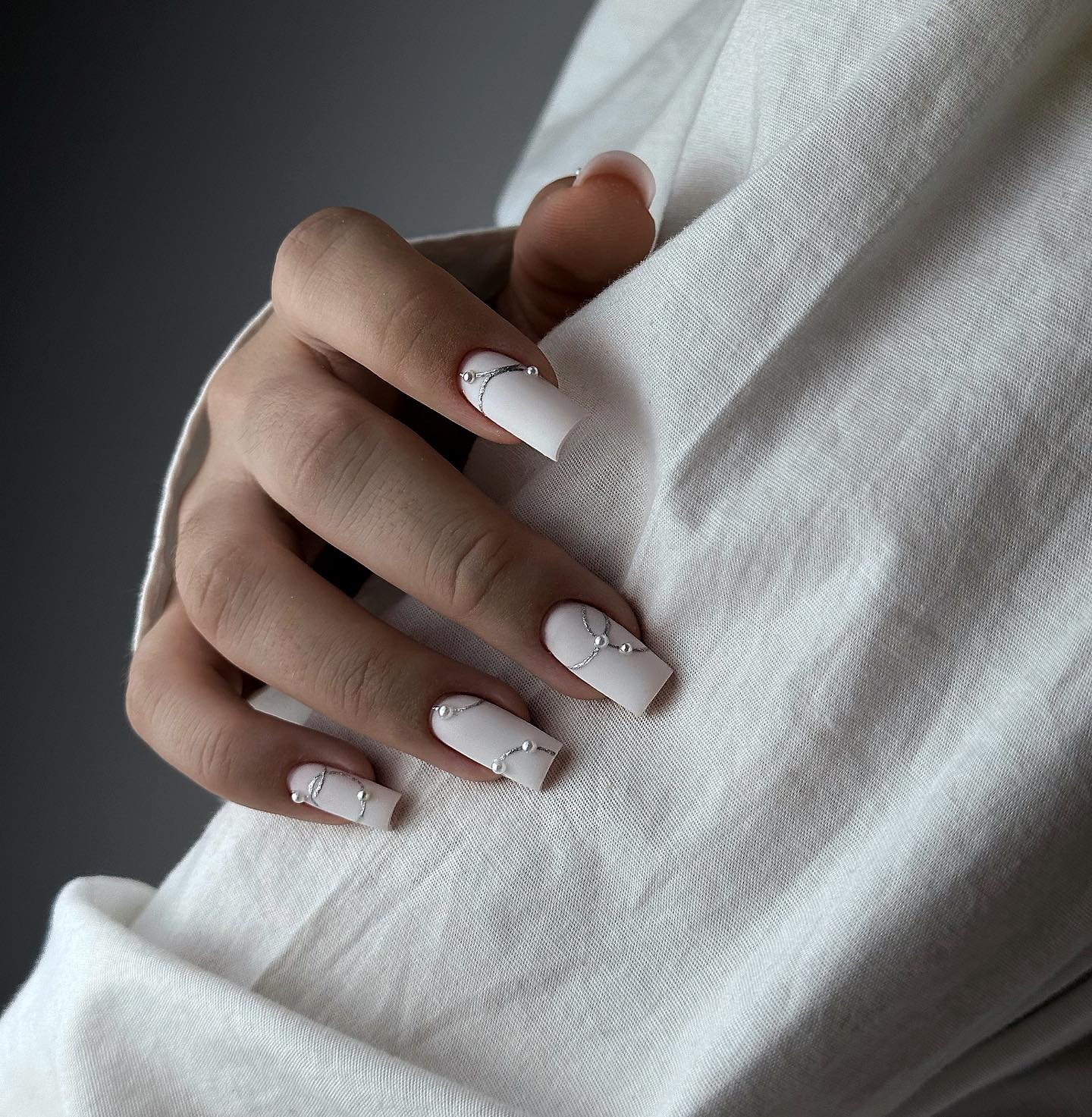 Молочний манікюр з перлинами чи камінцями
