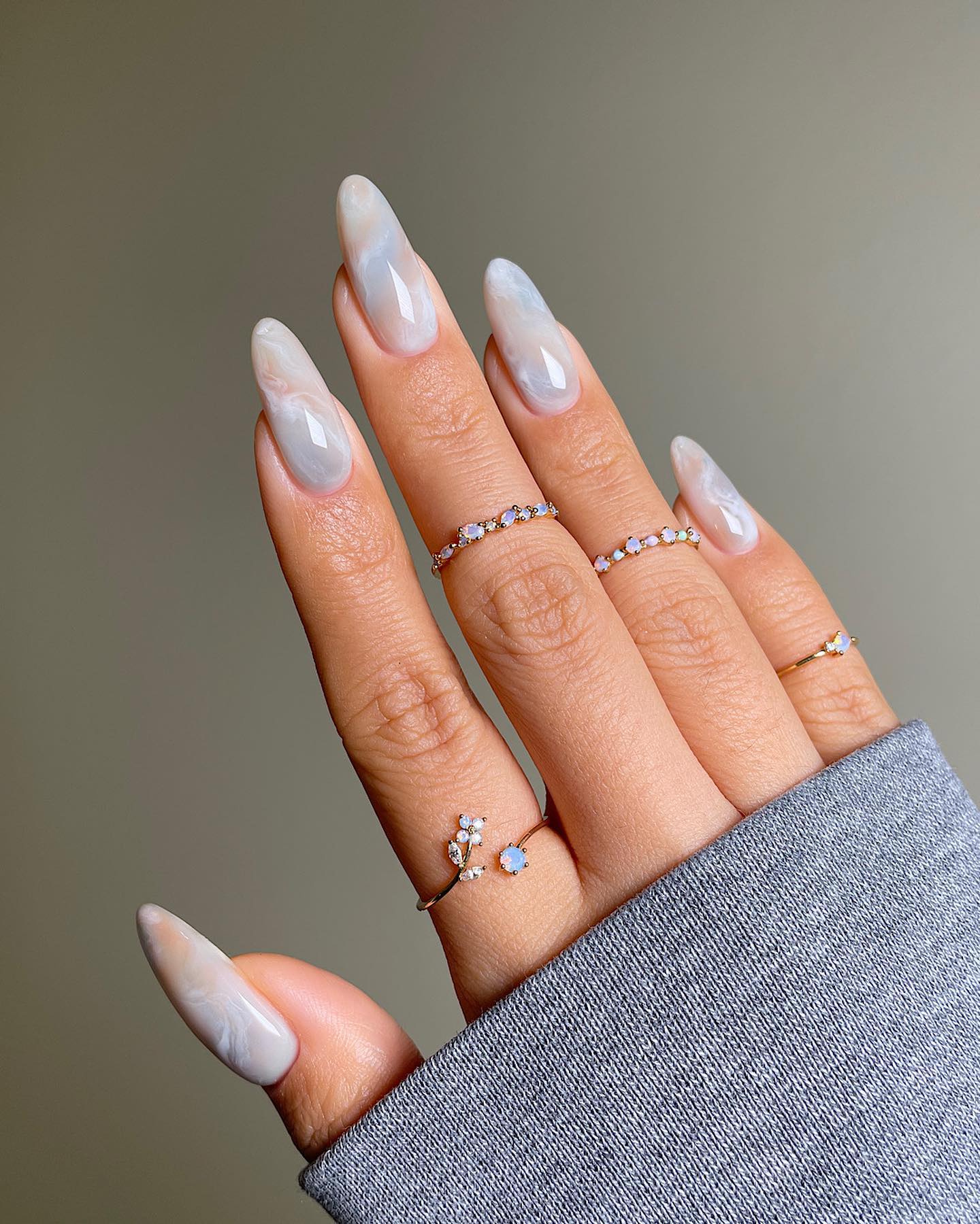 Мармуровий манікюр – різновид дизайну, який є імітацією натурального мармуру на нігтях за допомогою різних прожилок і розводів. Особливо красиво мармуровий манікюр виглядатиме на довгих нігтях мигдалеподібної форми.