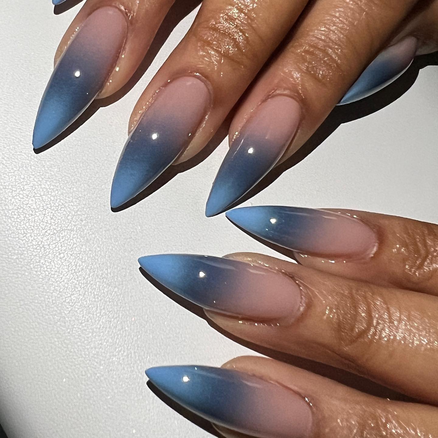 Манікюр омбре – це трендовий варіант покриття з плавним переходом від одного кольору до іншого. Для зимового нейл-арту можна вибрати кілька відтінків блакитного чи синього, які добре поєднуються як із білим, так і з нюдом.