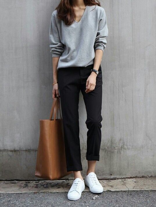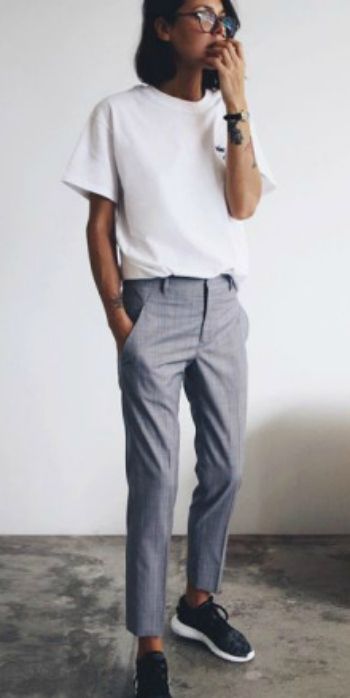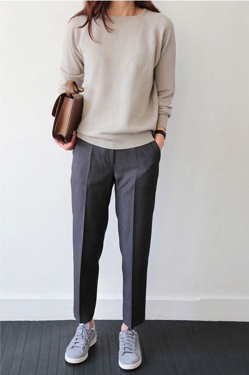 Костюмні брюки прекрасно впишуться в повсякденний образ, якщо поєднувати їх з кросівками, футболкою або іншими подібними речами. Також можна доповнити комбінацію симпатичною капелюшком або сумочкою.