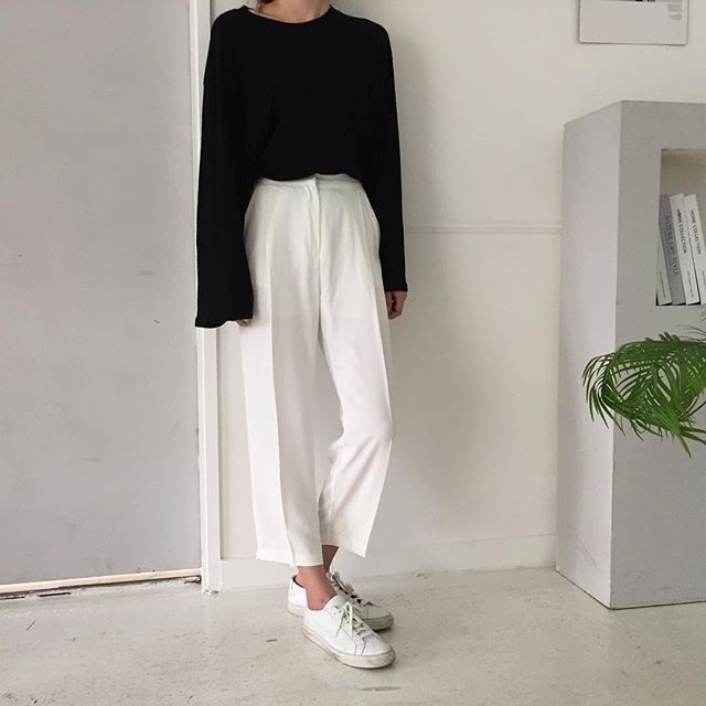 Також світлі і кросівки і сліпони прекрасно поєднуються з брючними штанами і будь-якою однотонною кофтою, створюючи ефект ділового образу. Цікаво те, що таке вбрання одночасно і виглядає досить строго, і не здається занадто нудним і формальним.