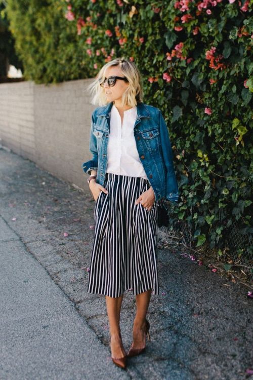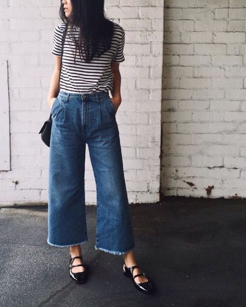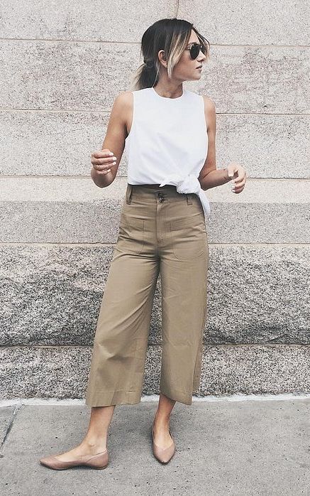 Кюлоти зручні тим, що прекрасно вписуються в будь-який повсякденний образ. Наприклад, їх можна носити як з сорочкою і джинсового курткою, так і з футболкою і туфлями. Тільки важливо пам'ятати, що в такі брюки практично всі топи краще заправляти, інакше фігура буде виглядати безформною.