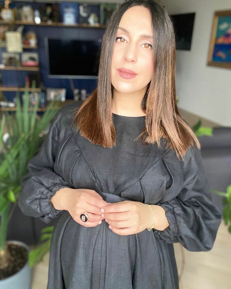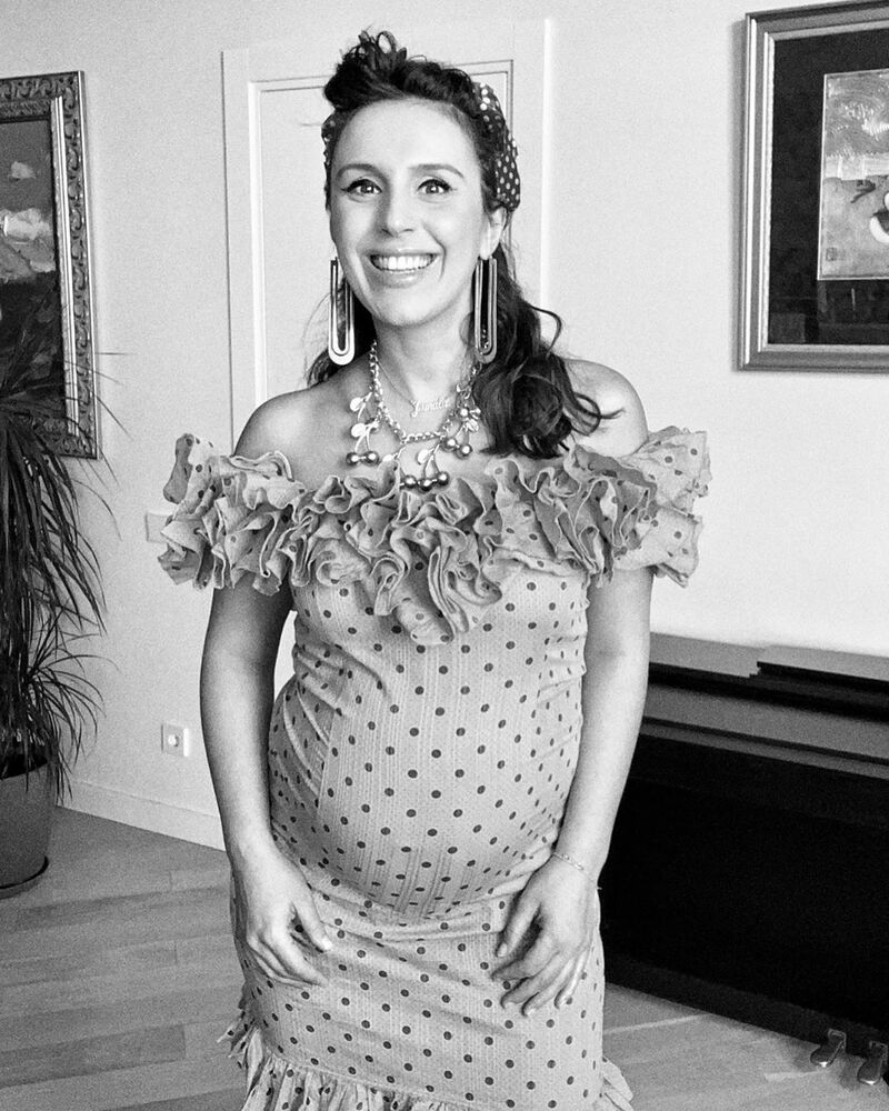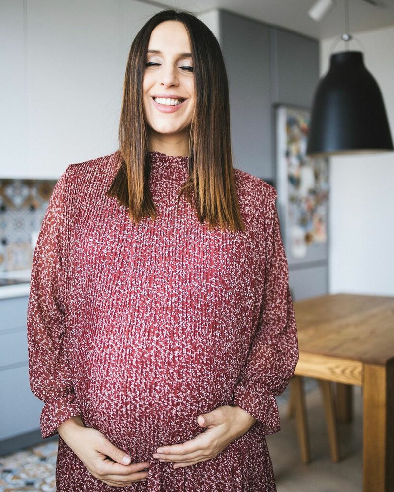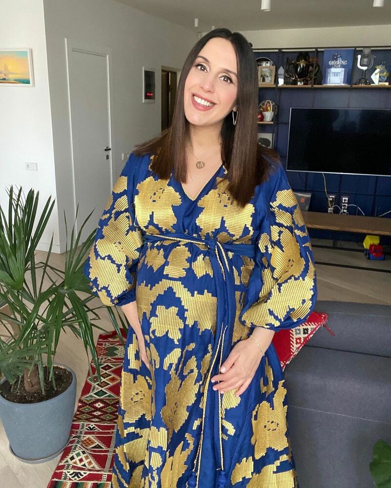 А на наступному фото вагітна Джамала не побоялася трохи ризикнути. Співачка одягла кумедну сукню з принтом, декольте і розрізом, який показав її ніжки.