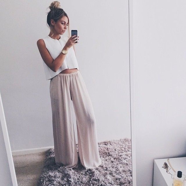 Також в моді поєднання ділових брюк і коротких топів. Таке вбрання можна надіти як з туфлями, так і з босоніжками або кросівками.