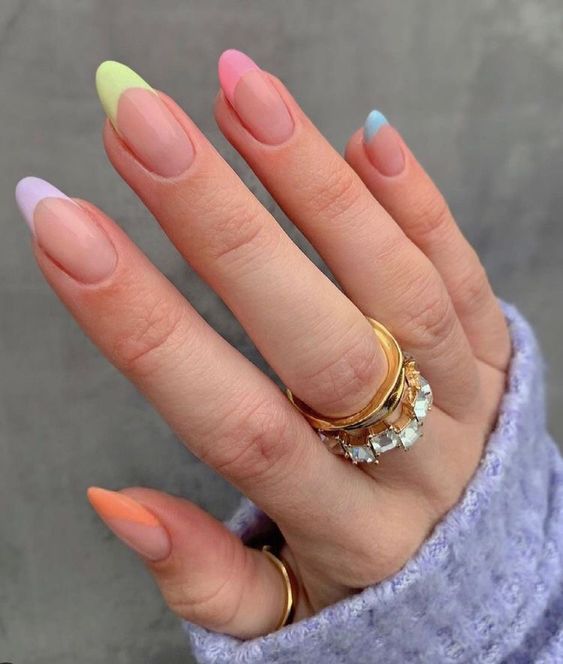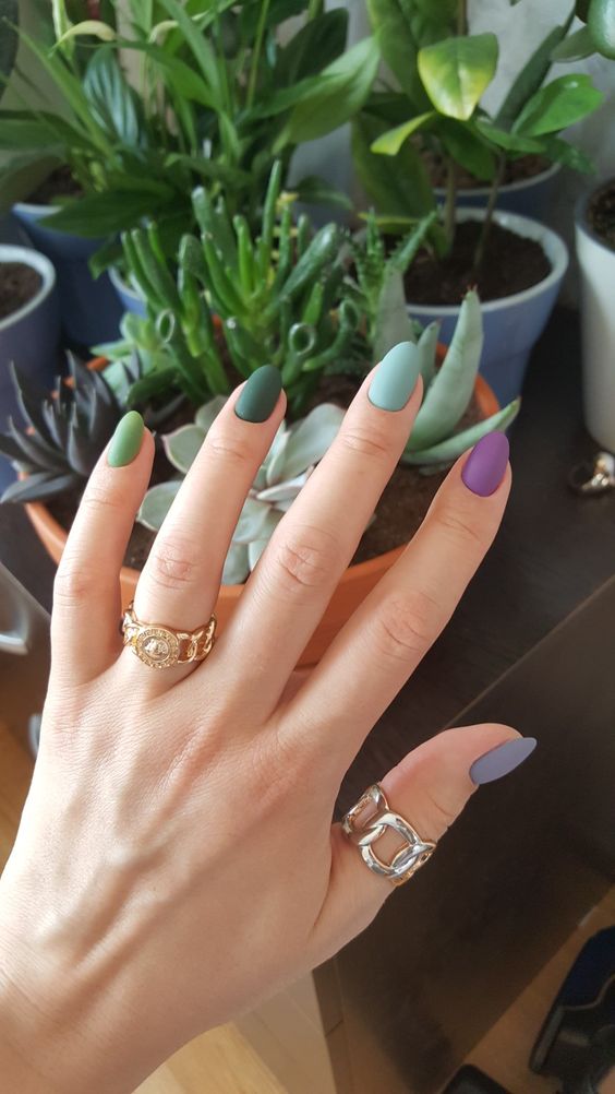 Різнокольоровий манікюр – це покриття кожного нігтя в трохи інший відтінок аналогічного кольору або зовсім інший колір.