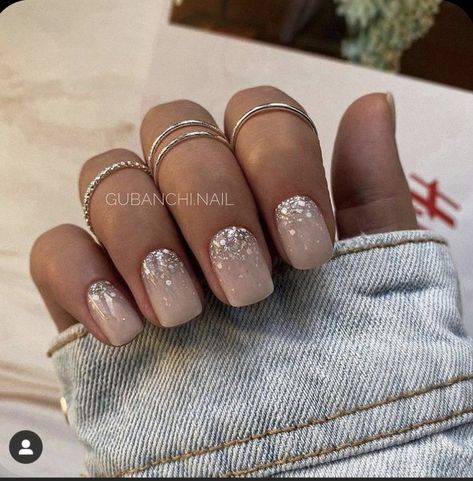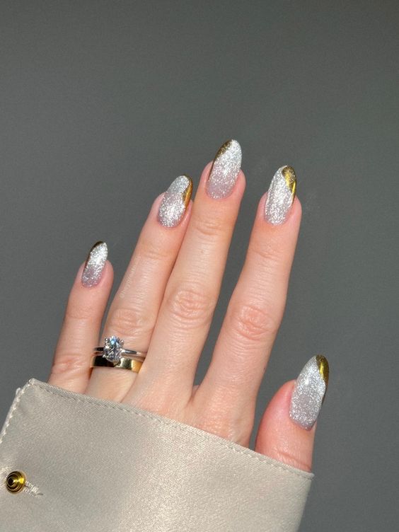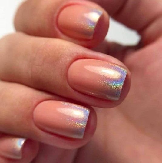 Для цієї техніки манікюру притаманним є плавний перехід з одного кольору в інший. В даному випадку ви можете зробити поєднання базового тілесного кольору та срібного відтінку - така комбінація виглядатиме доволі вдало і підійде для багатьох випадків.