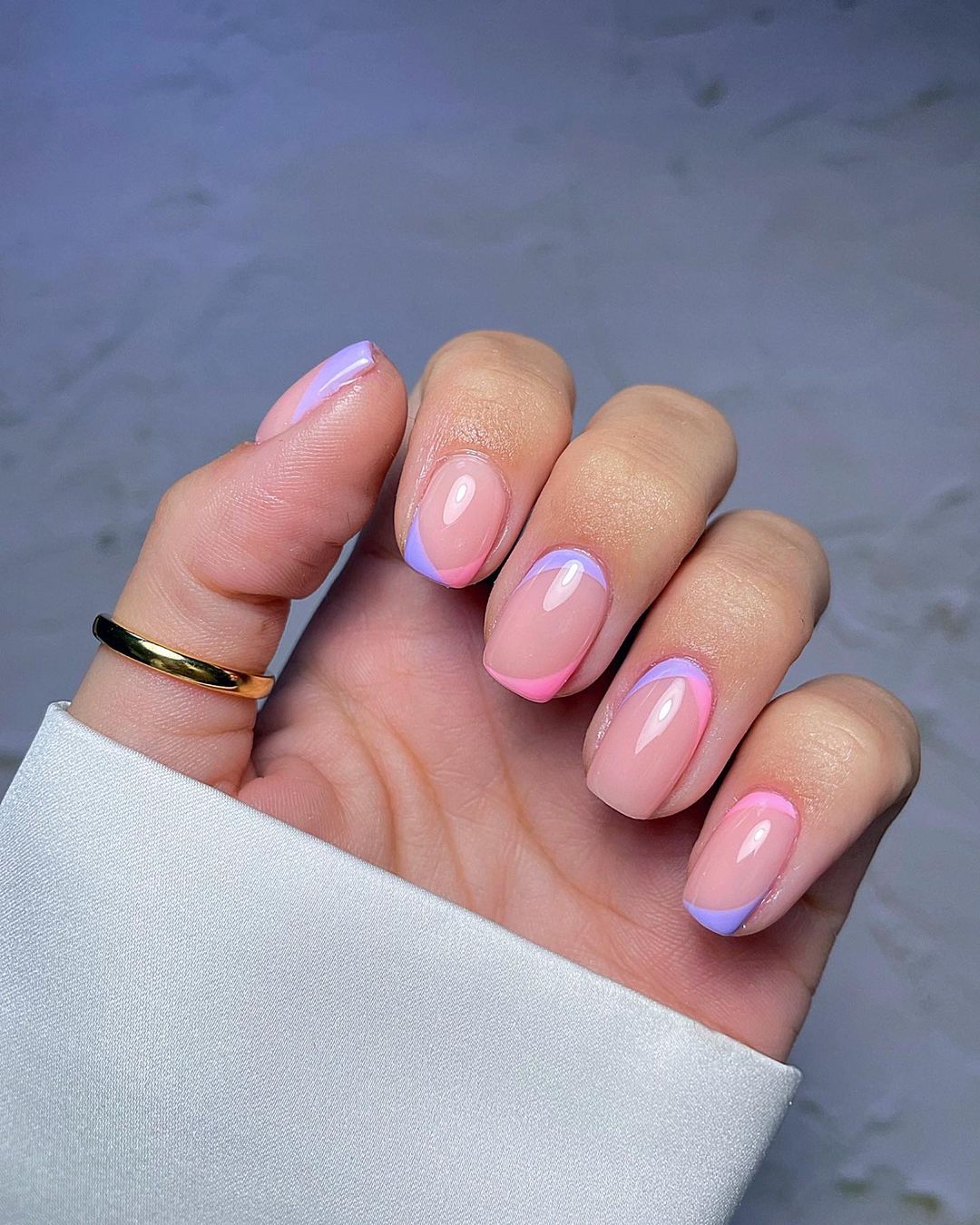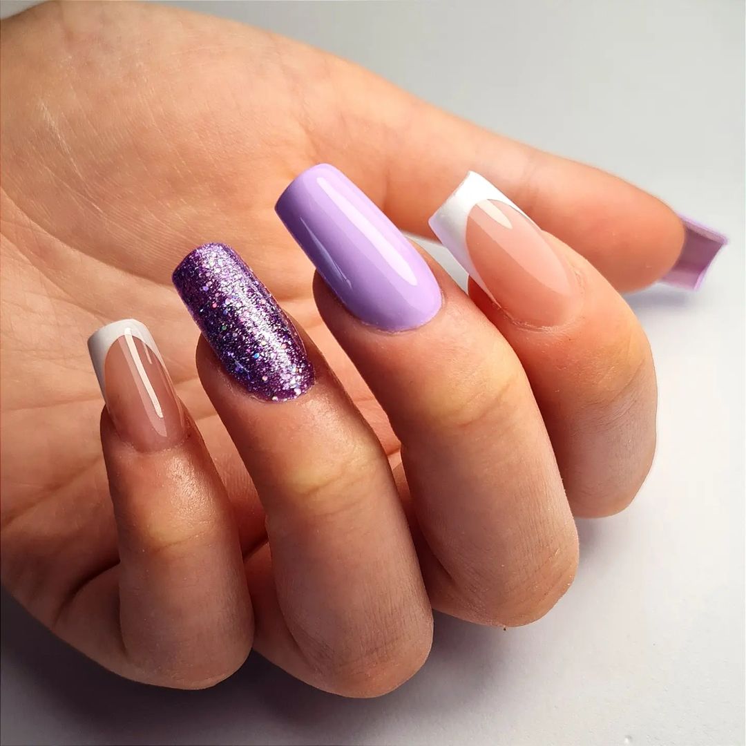 Якщо ви хочете поекспериментувати з французьким манікюром, зробіть його незвичну варіацію з кінчиком, покритим бузковим або рожевим відтінком. Також френч можна урізноманітнити малюнком і невеликою намистиною або стразами на нігтях. Або можна поєднати в одному манікюрі декілька дизайнів.
