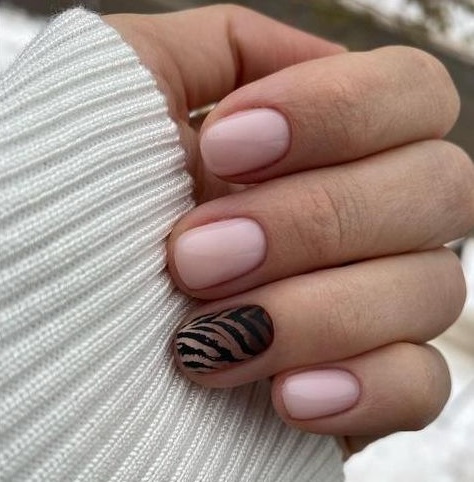 Якщо ви не хочете робити такий нейл-арт на кожному нігті, покрийте основну частину нігтів ніжно-рожевим кольором або білим відтінком, а на одному або двох зробіть акцент за допомогою тваринного принта.