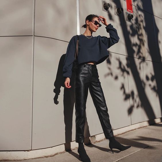 Залишаються на піку популярності й легінси зі штучної шкіри. Багато модниць віддають перевагу таким штанам, так як їх можна поєднувати з сорочками, гольфами-водолазками, светрами, топами та кардиганами, а також різноманітним взуттям та аксесуарами. До того ж, легінси з еко-шкіри підходять всім, незалежно від параметрів.