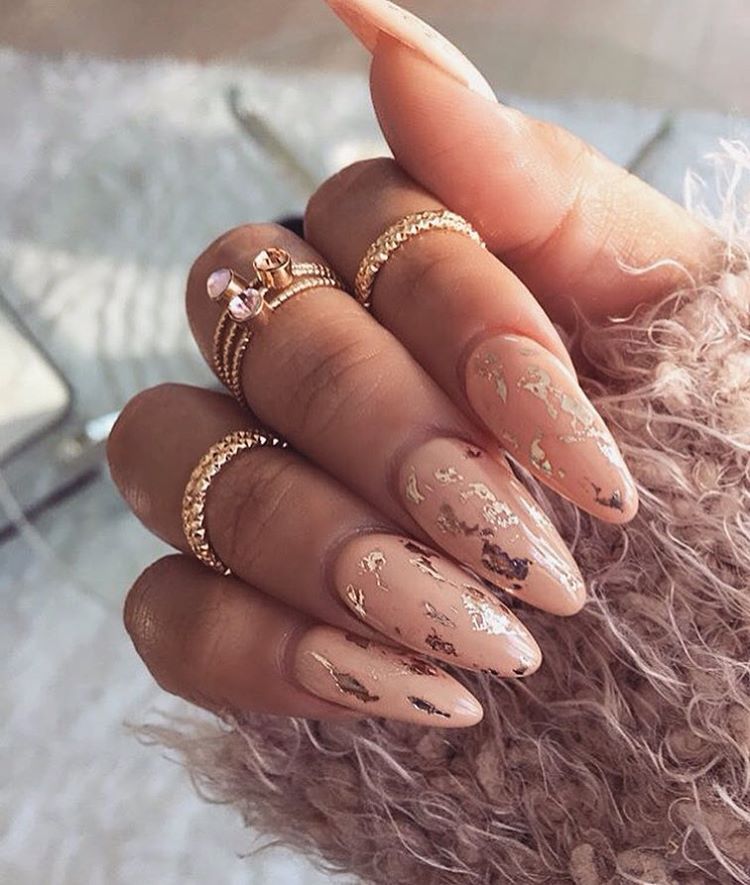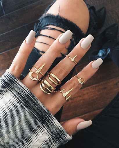 Також класичний і простий нюдовий манікюр прекрасно виглядає з золотими прикрасами на пальцях. Тому сміливо діставайте зі шкатулки свої каблучки, якщо хочете додати рукам трохи блиску.