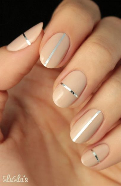 У моді все ще міцно тримається мінімалізм. Гарна ідея нюдового манікюру в такому стилі - однотонне покриття і тонкі золоті, срібні, білі або чорні лінії.