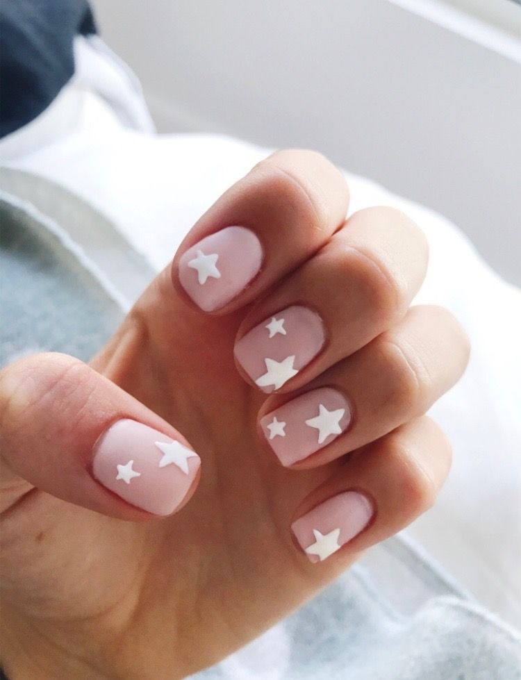 Симпатичний і милий варіант - нюдовий дизайн з різними візерунками. Наприклад, із зірочками. Влітку такий манікюр прекрасно підійде як на якесь свято, так і на кожен день.