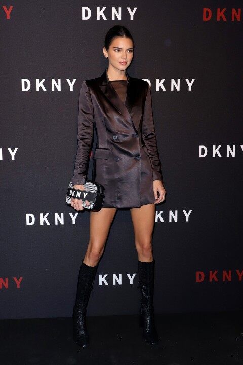 Для найсміливіших, тих, хто прагне виділятися із натовпу, можна обрати подовжений жакет, носити який можна у якості сукні. Приклад такої модної ідеї демонструють знаменитості. На знімку нижче можна побачити подовжений атласний жакет приємного персикового кольору, який американська модель Кендалл Дженнер поєднала із туфлями-човниками, масивними сережками та чорними напівпрозорими колготками.