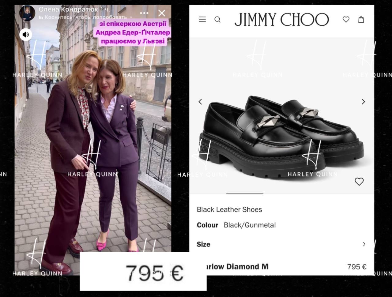 Українська блогерка Harley Quinn звернула увагу на те, що замспікера парламенту Олена Кондратюк одягла взуття від Jimmy Choo вартістю 795 євро.