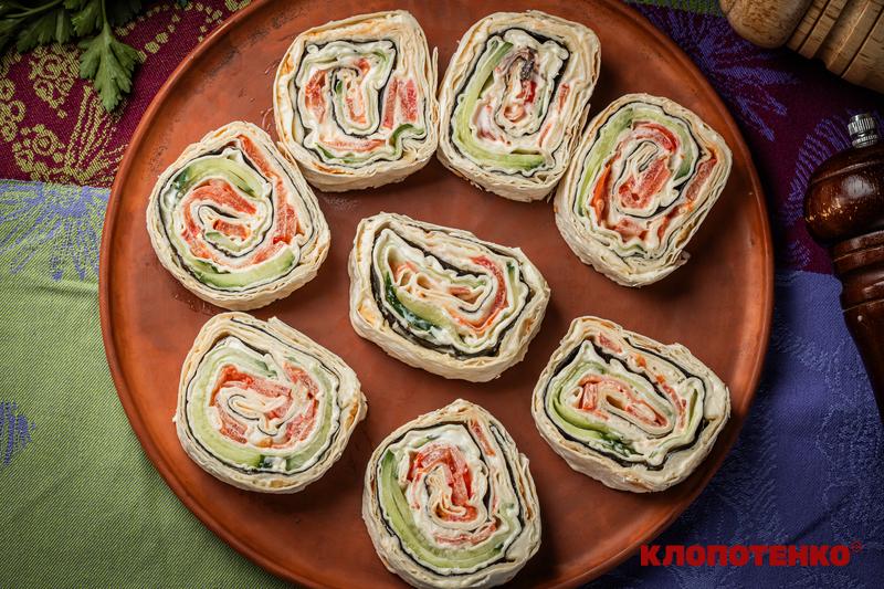 "Одна з найпростіших ідей для швидкої закуски або легкого перекусу. Його зручно готувати, адже достатньо загорнути в тонкий лист лаваша улюблені інгредієнти, трохи соусу – і страва готова. Рулет із лаваша можна подати на святковий стіл, узяти із собою на роботу чи в дорогу або ж приготувати, коли хочеться чогось смачного без зайвого часу, проведеного на кухні. Начинку легко змінювати на свій смак, тому лаваш щоразу виходить трохи іншим", – пояснив Клопотенко.
