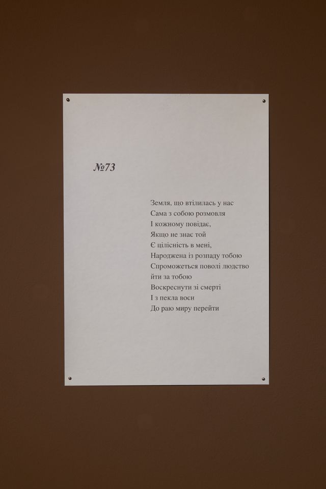 Виставка відкриває перспективу народження з руйнації – як після зникнення людей повертаютьсярідкіснібіологічні види, так і після соціального чи емоційного краху з’являються інші способи бути,відчувати, творити.