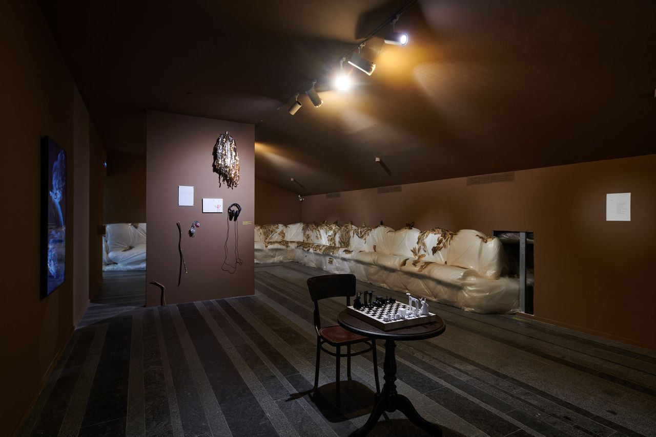 Три нові роботи доповнюють експозицію. Мисткиня Ольга Штейн презентує масштабну інсталяцію "Диванна форма №3", створену спеціально для цієї виставки.