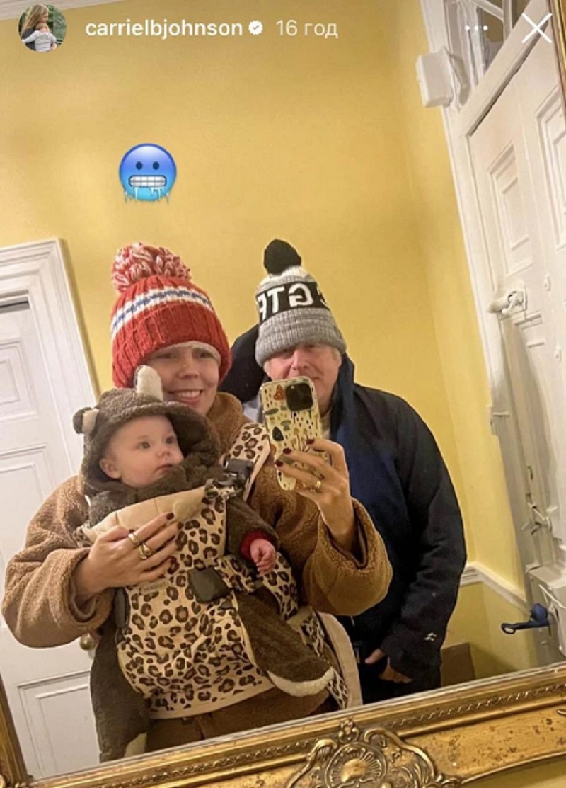Експрем'єр Великої Британії Борис Джонсон, який удев'яте став батьком, засвітився на кумедному фото з дружиною Керрі Саймондс та маленькою 6-місячною донькою. Малеча Поппі була у теплому комбінезоні з капюшоном, а її батьки - в смішних шапках з помпонами.