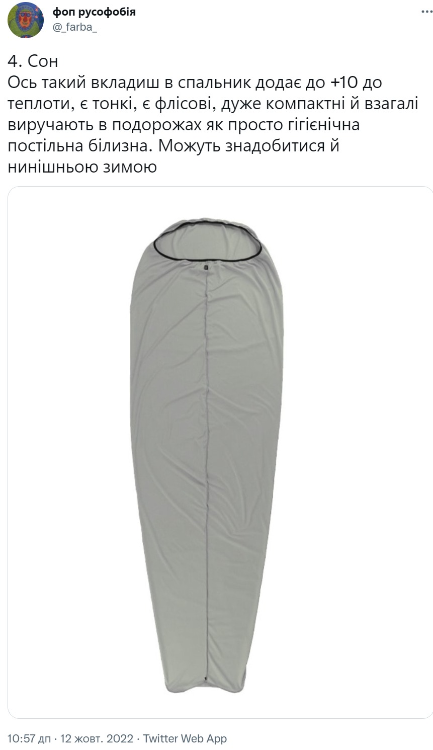 Нинішньої зими буде не зайвим придбати вкладиш у спальник: є тонкі, флісові та дуже компактні варіанти. І хоча дівчина не пробувала встановлювати в холодному приміщенні намет, таку пораду для сну в будинку без опалення назвала логічною.