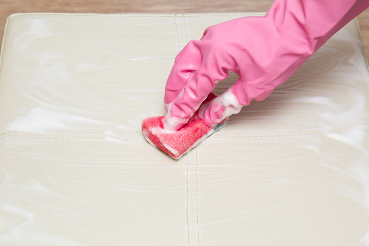- Для нанесення засобу використовуйте губку, мікрофібру, ватні диски, щоб не пошкодити волокна тканини.