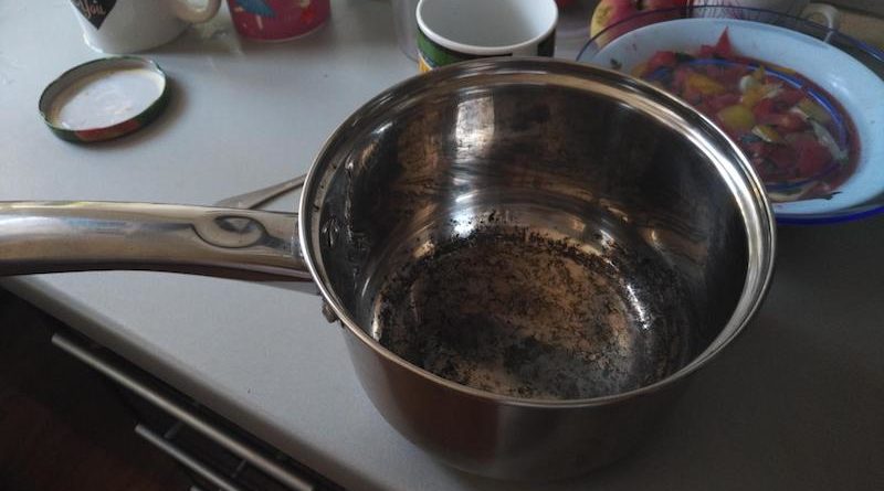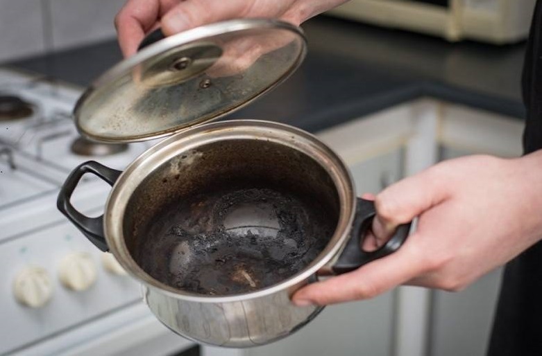 У каструлю наливаємо воду і додаємо кілька столових ложок рідкого мила. Потім кип'ятимо суміш протягом 15 хвилин, виливаємо вміст і промиваємо посуд кілька разів.