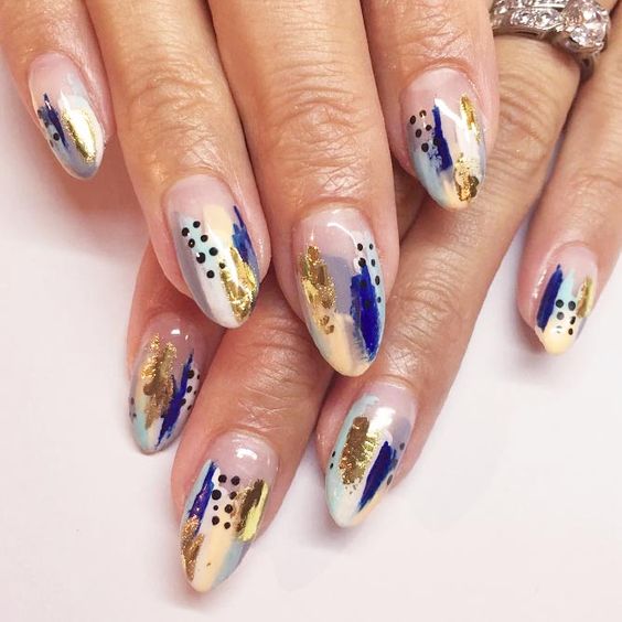 Ще один тренд із застосуванням фольги - камуфляж. На нюдовую або прозору основу наносять мазки фольгою і кольоровими гель-лаками.