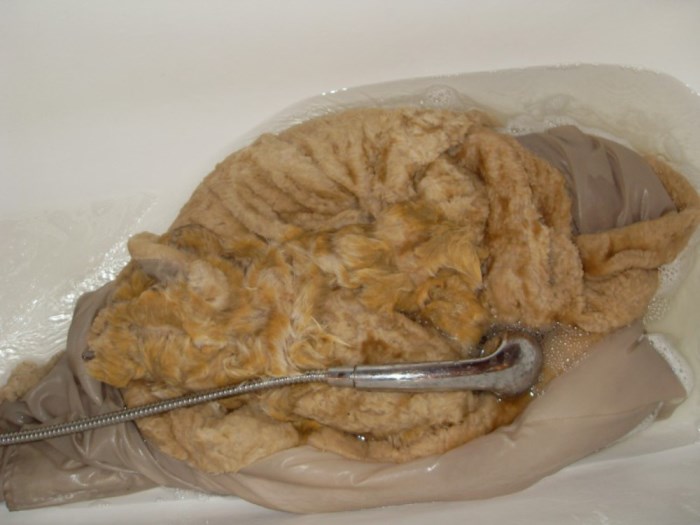 Якщо виробник вказав, що шубу все ж таки можна прати, зробити це можна навіть у домашніх умовах, але тільки вручну – машинне прання не підійде. Важливо дотримуватись кількох простих правил: для початку наливаємо в таз або ванну теплу воду і розводимо в ній спеціальний засіб для прання делікатних речей або вовни. Ретельно збовтуємо його, щоб утворилася мильна піна. Потім занурюємо туди шубу і замочуємо ненадовго - приблизно на 10-15 хвилин. Під час прання шубу не можна інтенсивно терти, оскільки такі рухи можуть пошкодити ворс. По найзабрудненішим ділянкам - манжетам, рукавам, коміру - акуратно проходимося м'якою щіткою. Потім виполіскуємо шубу декілька разів у теплій воді, а в самому кінці – у холодній. У жодному разі такий верхній одяг не можна викручувати. Як варіант - підвішуємо шубу на вішалці над ванною і даємо воді самостійно стекти, лише зрідка проводячи по ній долонею. Коли вода стече, переносимо шубу в приміщення, що добре провітрюється, і даємо їй остаточно просохнути. Періодично розчісуємо виріб, щоб надати ворсу потрібну форму.