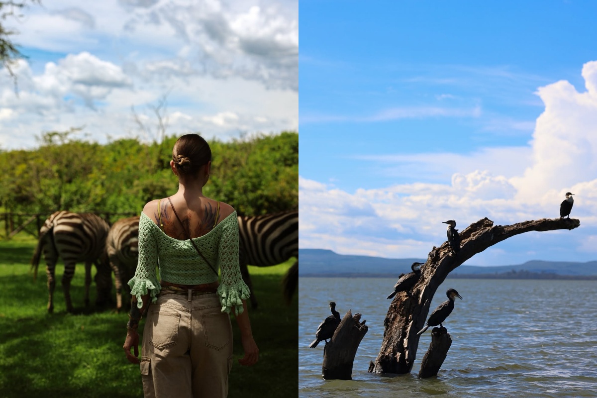 "Кенія. День перший. Ми виїхали з Найробі в сторону озера Найваша. Саме тут, на березі, розташований готель Lake Naivasha Sopa Resort, де ми проведемо дві доби. Після обіду ми вирушили на водну прогулянку озером в пошуках бегемотів. Ми приплили до острова, який утворився після наводнення, і вперше отримали досвід пішохідного сафарі! Саме тут знімали фільм Out of Africa (1985) і це відвал башки", - висловилася Саша.