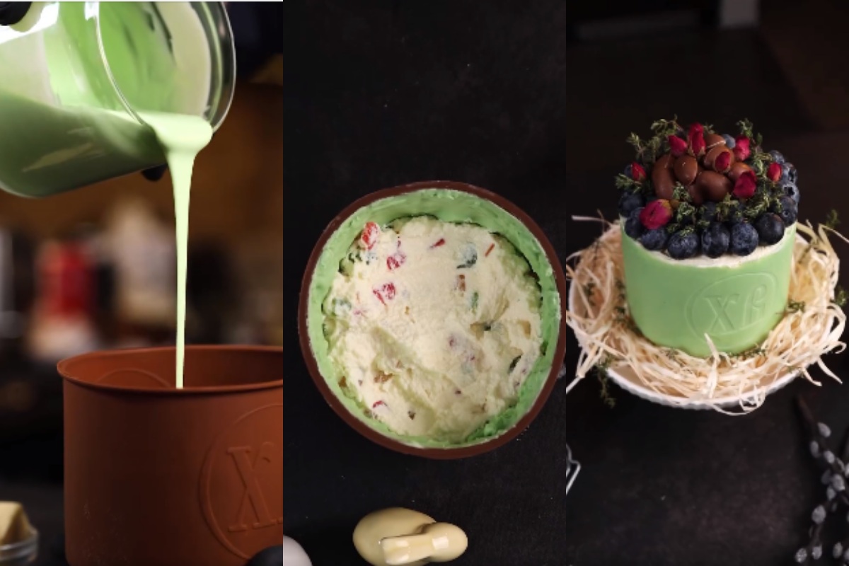 Білий шоколад розтопити імпульсами по 10-15 секунд у мікрохвильовці. Шоколад потрібної консистенції вилити у форму, рівномірно розподіливши по стінках форми, та залишити на певний період.
