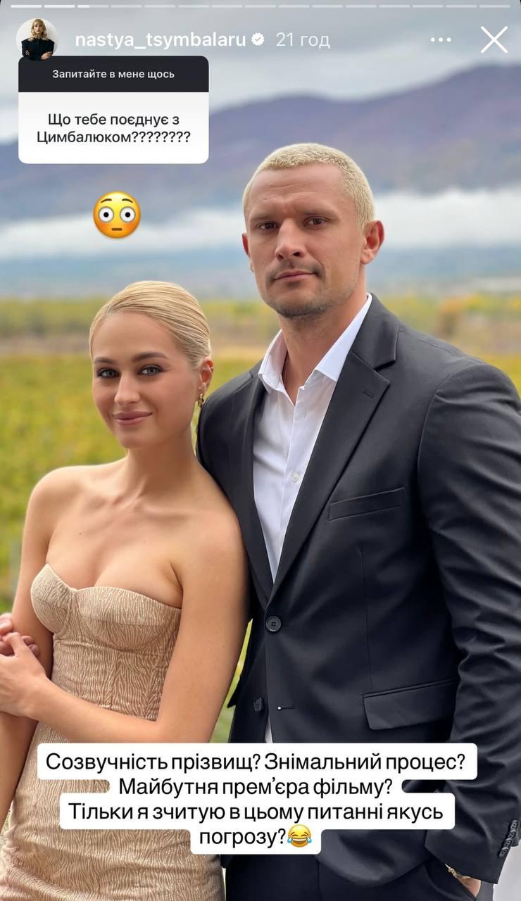 "Співзвучність прізвищ? Знімальний процес? Майбутня прем'єра фільму?" - написала Цимбалару, говорячи про стрічку "Коли ти розлучишся?".