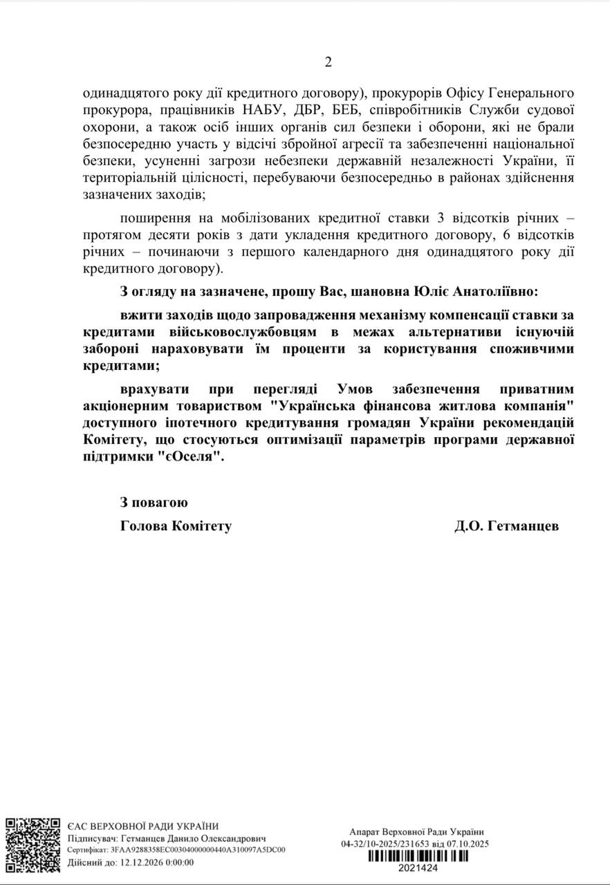 Глава парламентского Комитета по вопросам финансов, налоговой и таможенной политики Даниил Гетманцев сообщил, что обратился к премьеру Юлии Свириденко с просьбой решить проблему отказа банков в кредитовании военнослужащих.