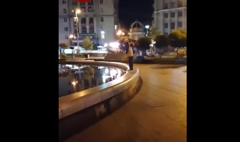 В центре Киева на видео попал молодой парень, который решил справить нужду в фонтан.
