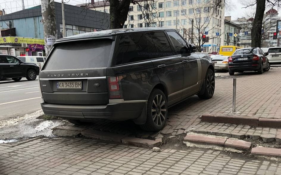 В Киеве водитель автомобиля Range Rover оставил свое транспортное средство на пешеходной дорожке в месте, где предусмотрен пандус для проезда людей с ограниченными возможностями и детских колясок.