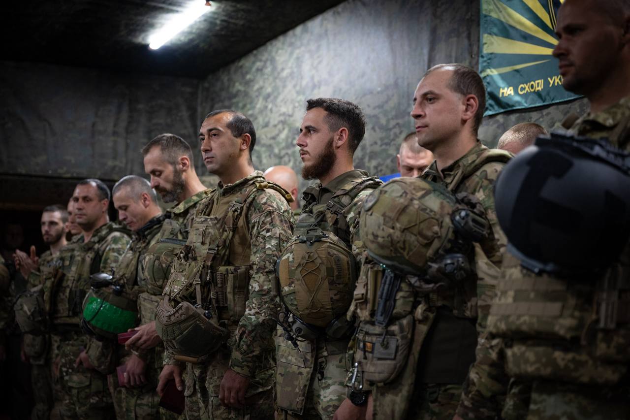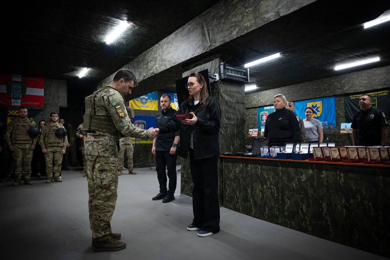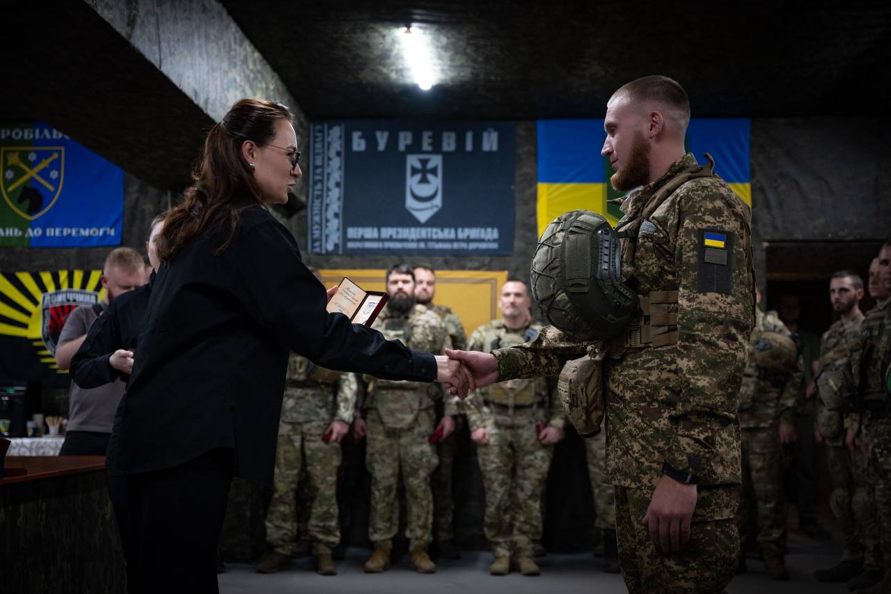 "Работаем с командой в Донецкой области. Имела честь наградить военнослужащих Национальной гвардии Украины и Государственной пограничной службы Украины, представителей боевых подразделений Национальной полиции, работников сервисных подразделений и спасателей. Рада познакомиться с командиром 1-го корпуса Национальной гвардии Украины АЗОВ Денисом Прокопенко", — сообщила Свириденко.