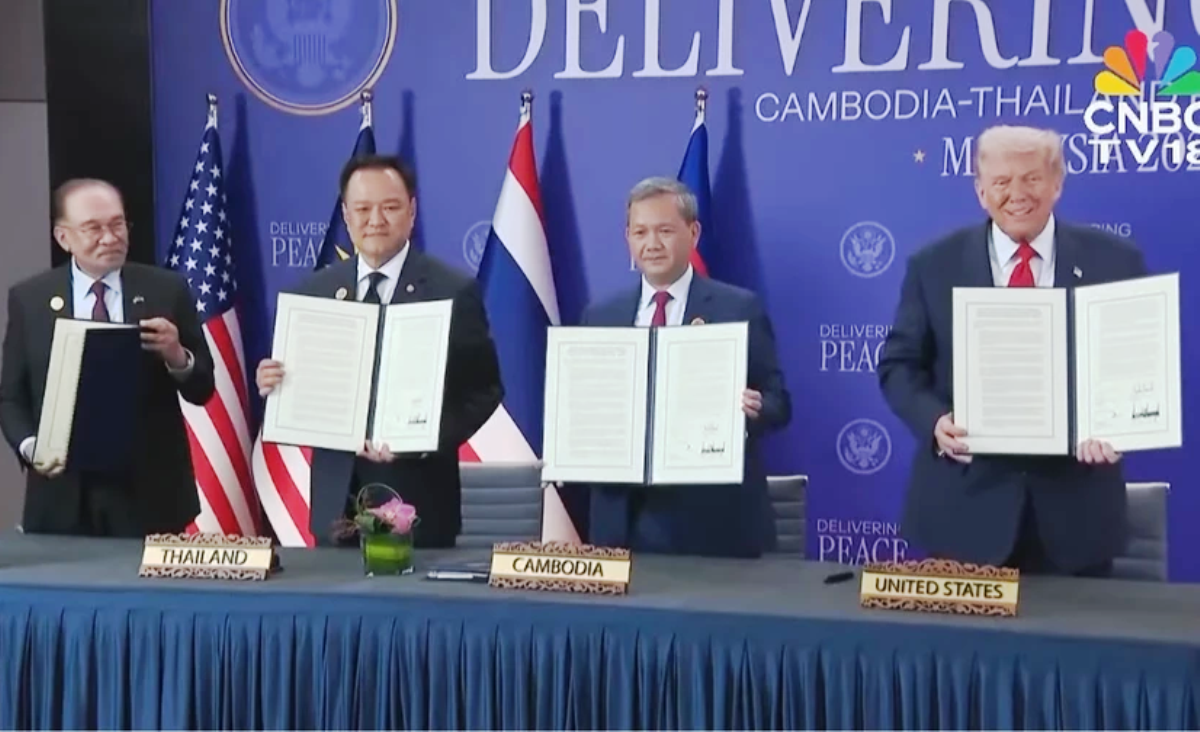 Президент США Дональд Трамп присоединился к церемонии подписания мирного соглашения между Камбоджей и Таиландом во время саммита стран Юго-Восточной Азии в Малайзии в воскресенье, сообщает CNN.