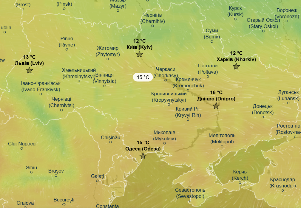 В четверг, 16 октября, с запада в Украину зайдет волна теплого воздуха – атмосферный фронт прогонит с территории нашей страны дожди. Днем ожидается комфортная погода с максимумом +11…+13 градусов на большей территории нашей страны. При этом в Сумской, Черниговской, Харьковской, Луганской и Донецкой областях еще будет прохладно — в пределах +8...+10.
