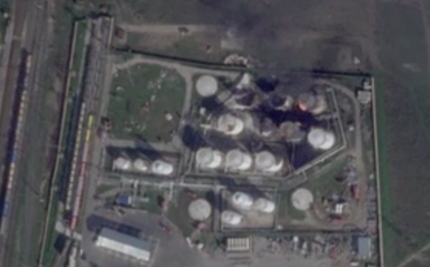 Спутниковые снимки зафиксировали по меньшей мере пять сгоревших емкостей с топливом.