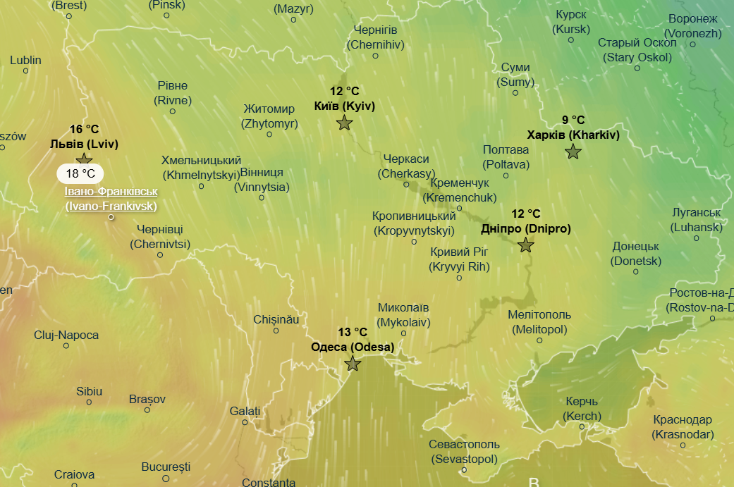 В воскресенье, 16 ноября, в западных, северных и центральных областях нашей страны сохранится прохладная погода с температурой в пределах +9...+12 градусов. Теплее будет на юге страны - в Одесской области ожидается до +13, а на Запорожье почти летние +17 градусов.