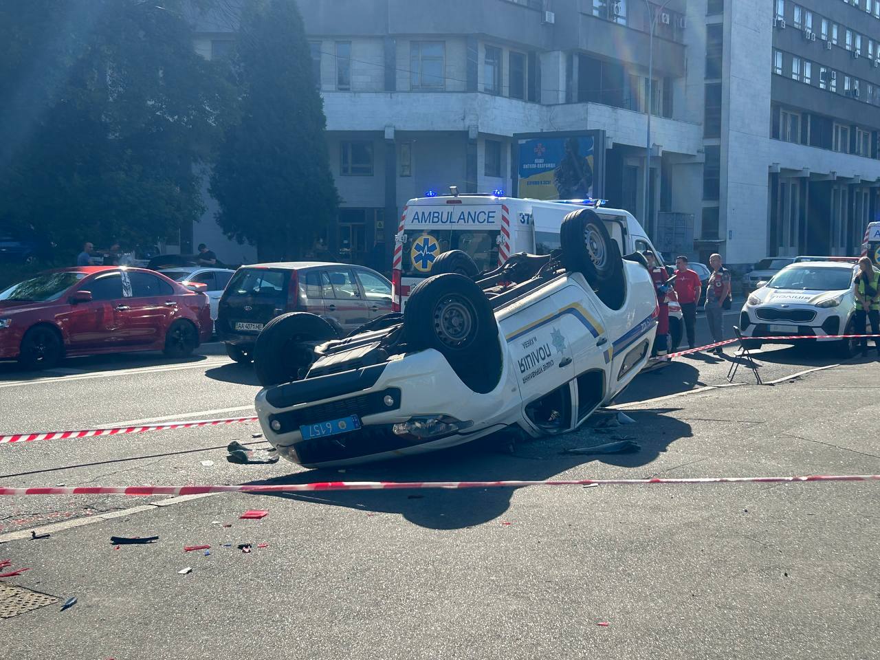 В Киеве на перекрестке улиц Ивана Федорова и Каземира Малевича произошло ДТП с участием служебного автомобиля полиции, в результате которого погиб правоохранитель. Еще три человека получили телесные повреждения, их состояние стабильное.