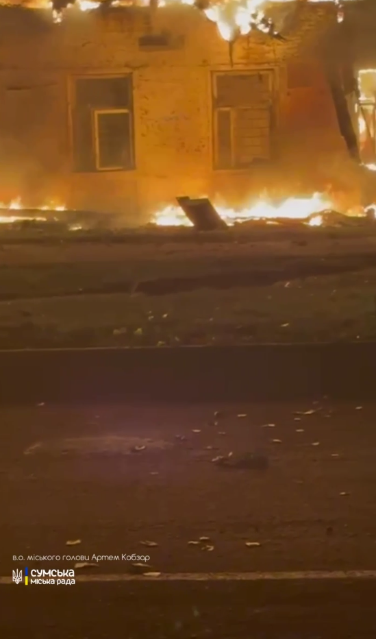 Начальник Сумской областной военной администрации Олег Григоров в Telegram написал, что в результате вражеской атаки в Сумах возник масштабный пожар