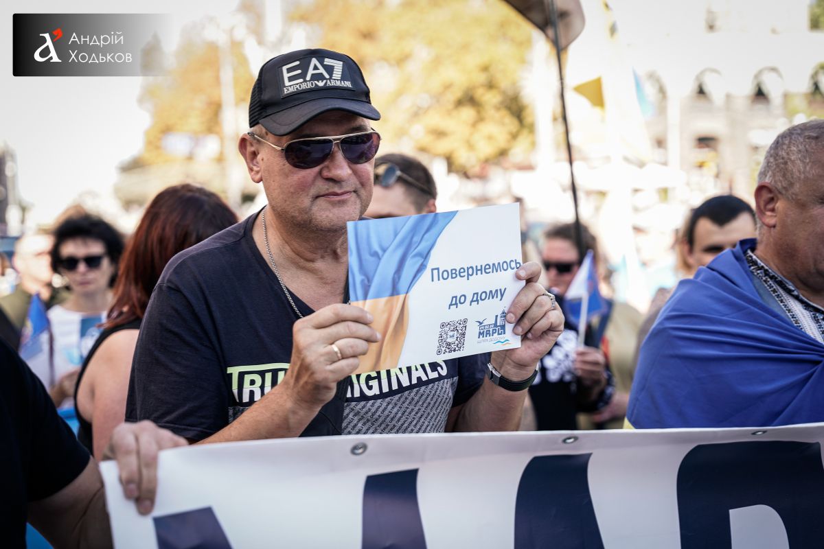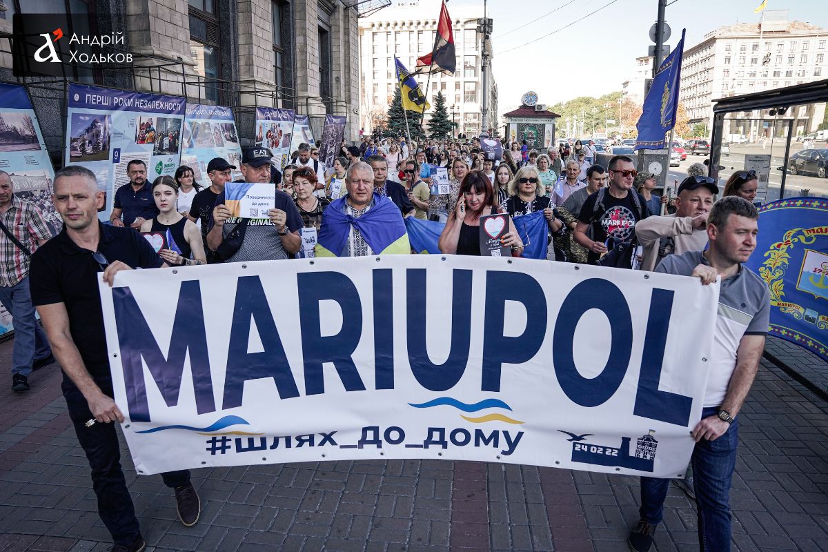 21 сентября, в День города Мариуполя, на Майдане Незалежности в Киеве проходит акция "Мариуполь — путь домой". Ее организовали жители Мариуполя, вынужденные покинуть город из-за оккупации.